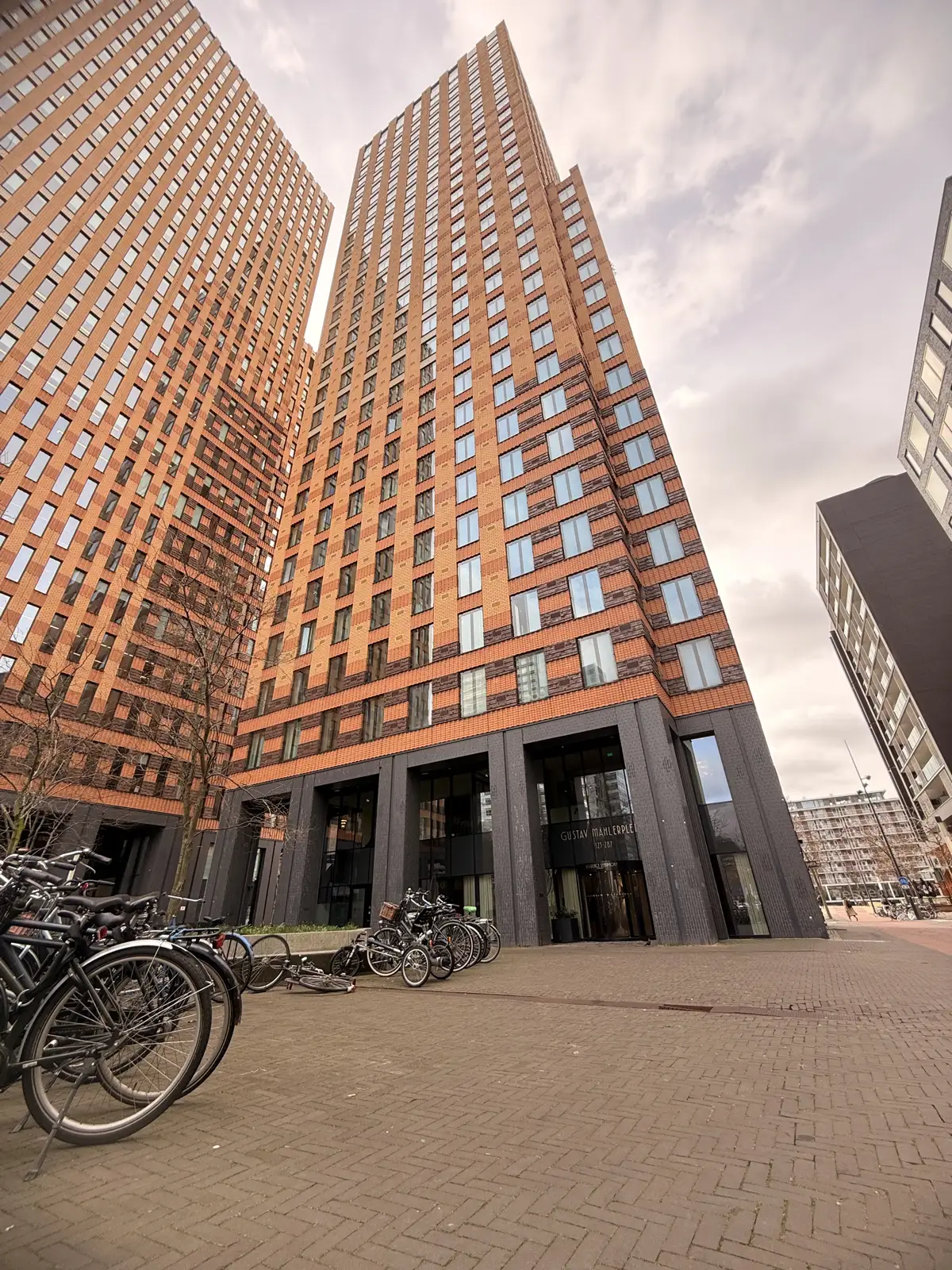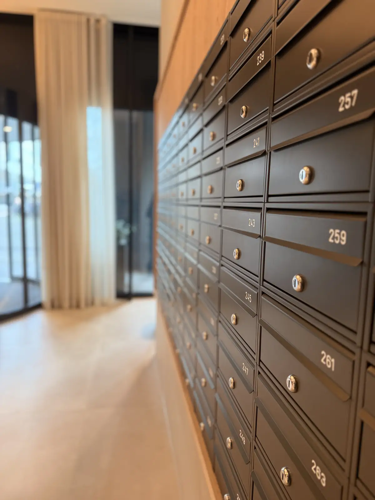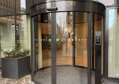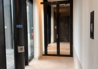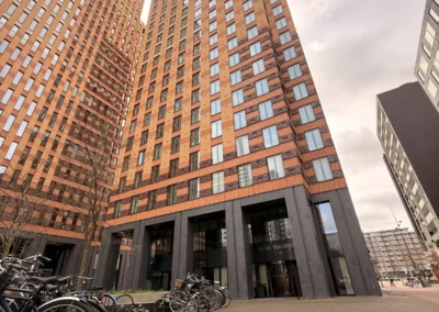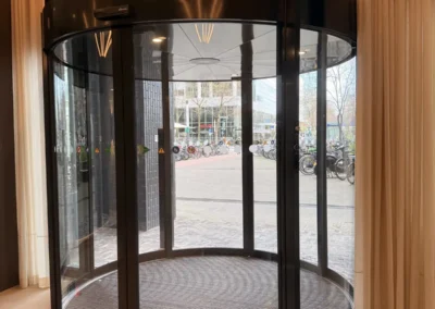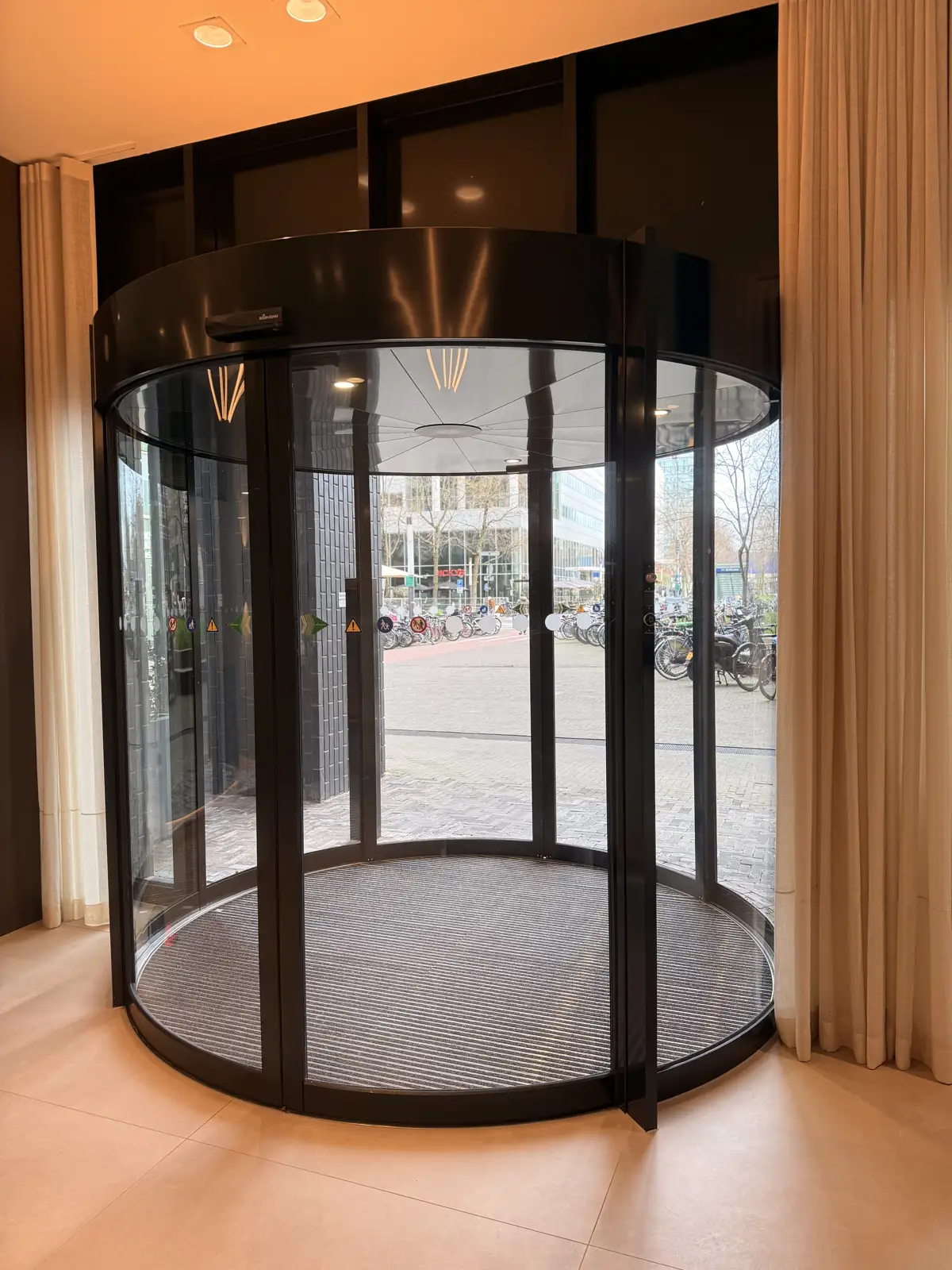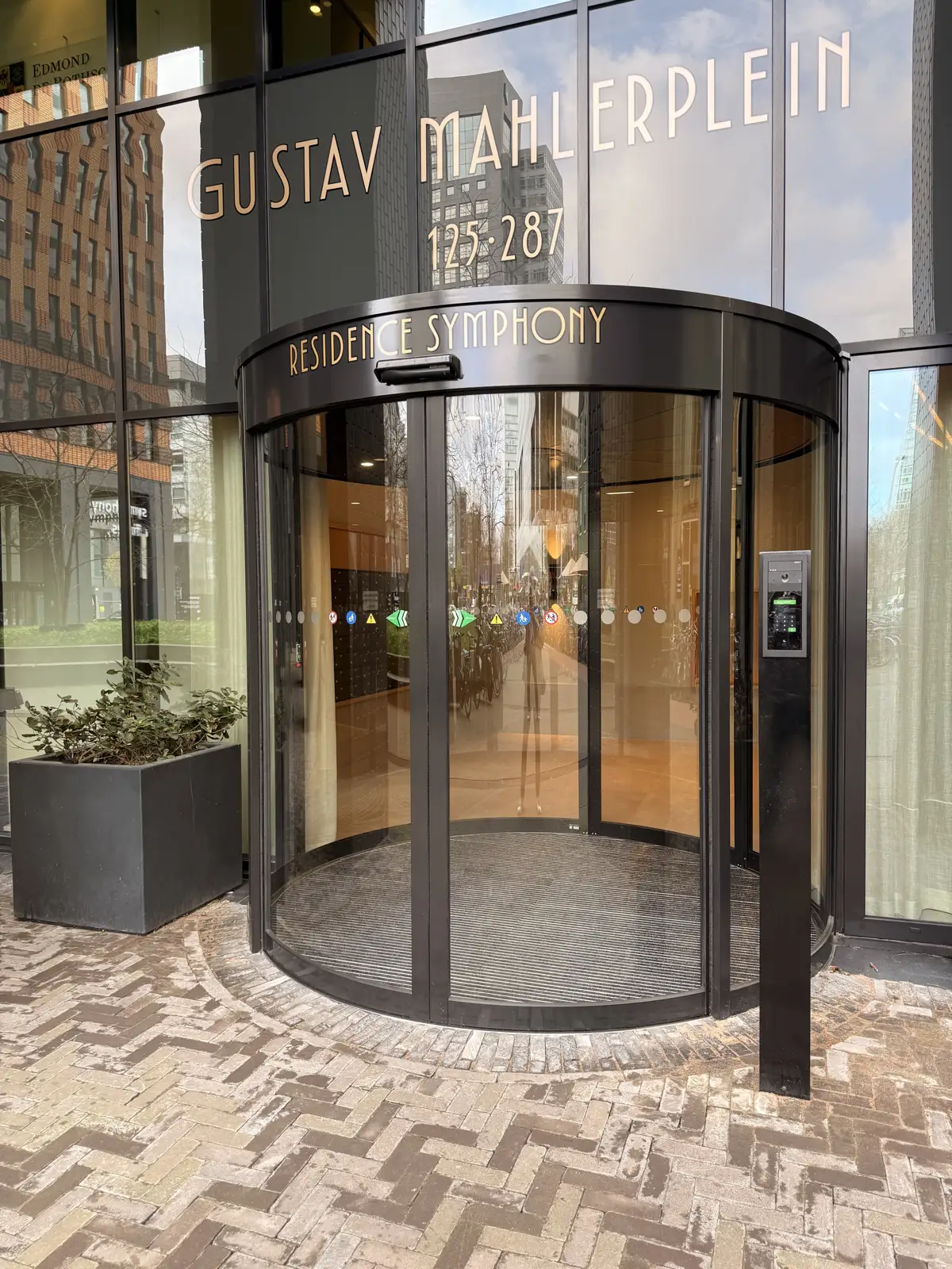 De wens was een veilige en tegelijk gastvrije entree. Samen met Boon Edam – wereldmarktleider in draaideuren en toegangsoplossingen – ontwierpen we een maatwerk tourniquet: een beveiligde draaideur die alleen toegang geeft aan bewoners. We pasten de vliesgevel aan en legden extra fundering voor het plaatsen van de tourniquet. De receptie is dagelijks bemand door een eigen gastheer of gastvrouw. Bezoekers krijgen zo een persoonlijk welkom.